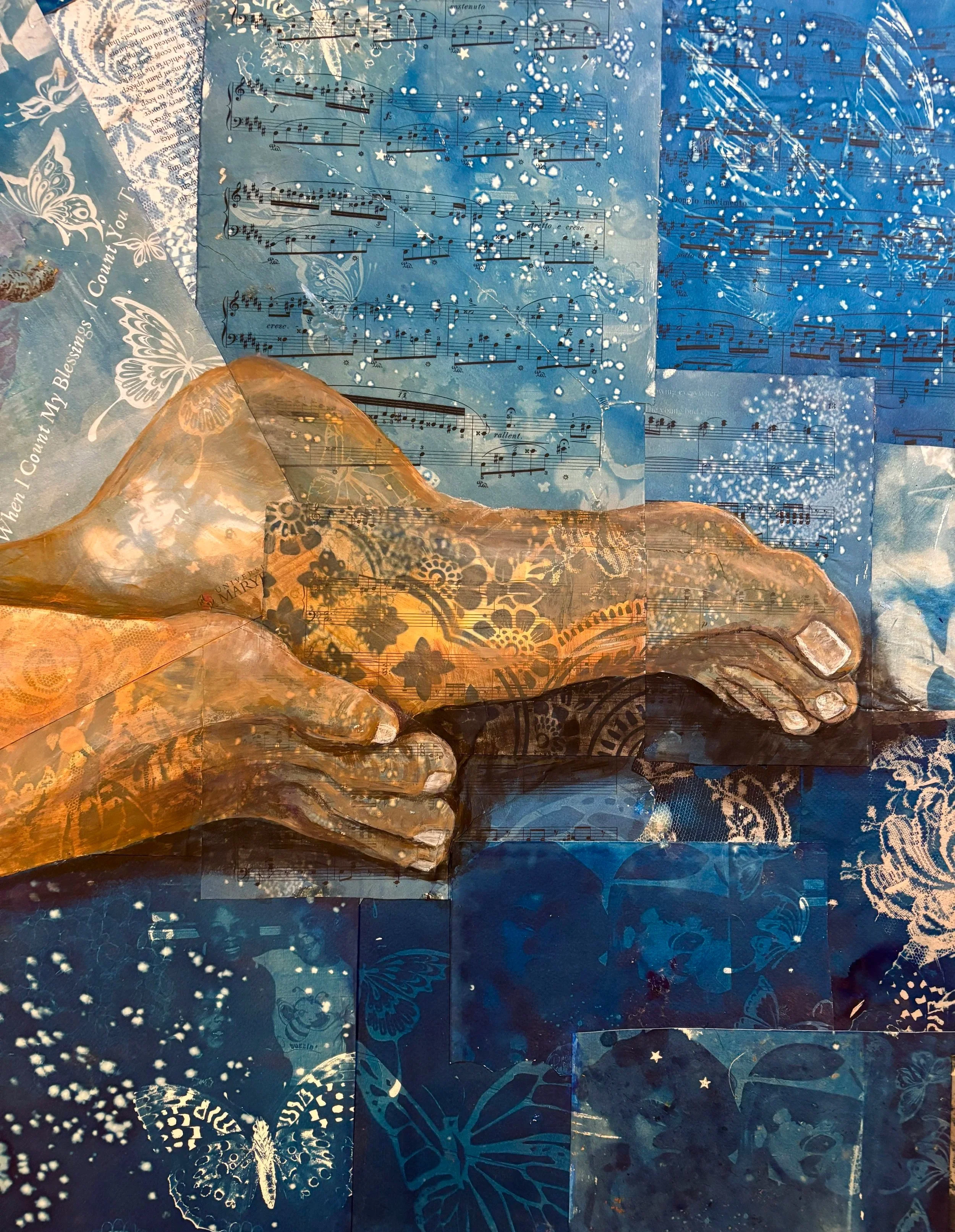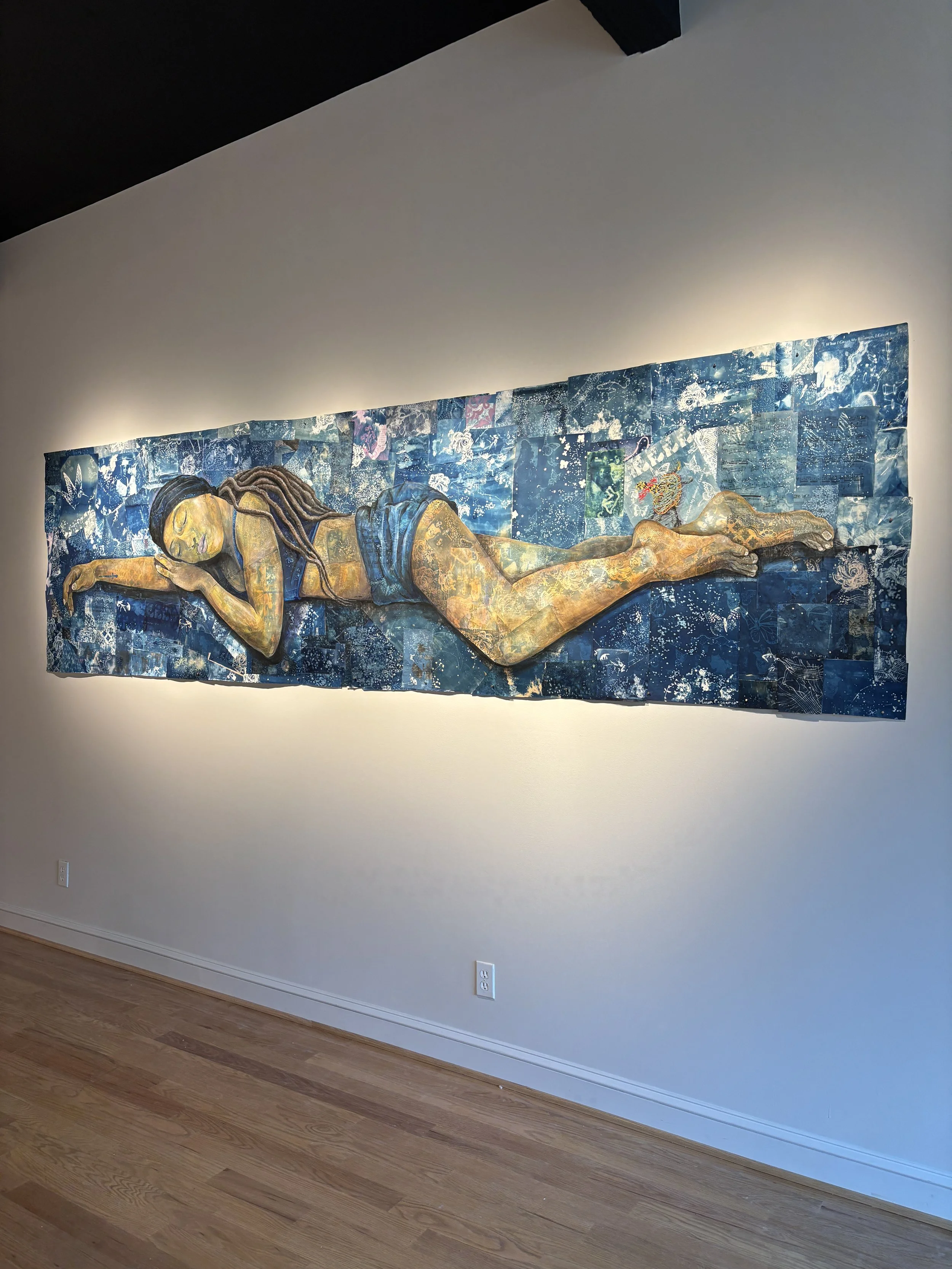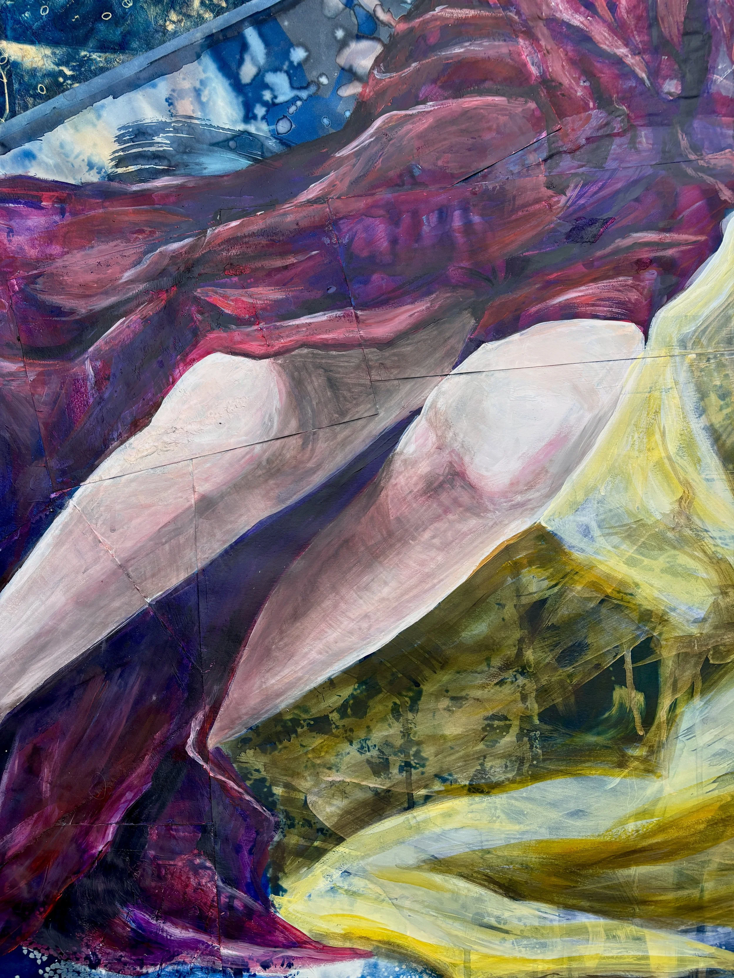 Aphrodite, 2022. Acrylic paint on collaged cyanotype prints. 3 x 6 ft.