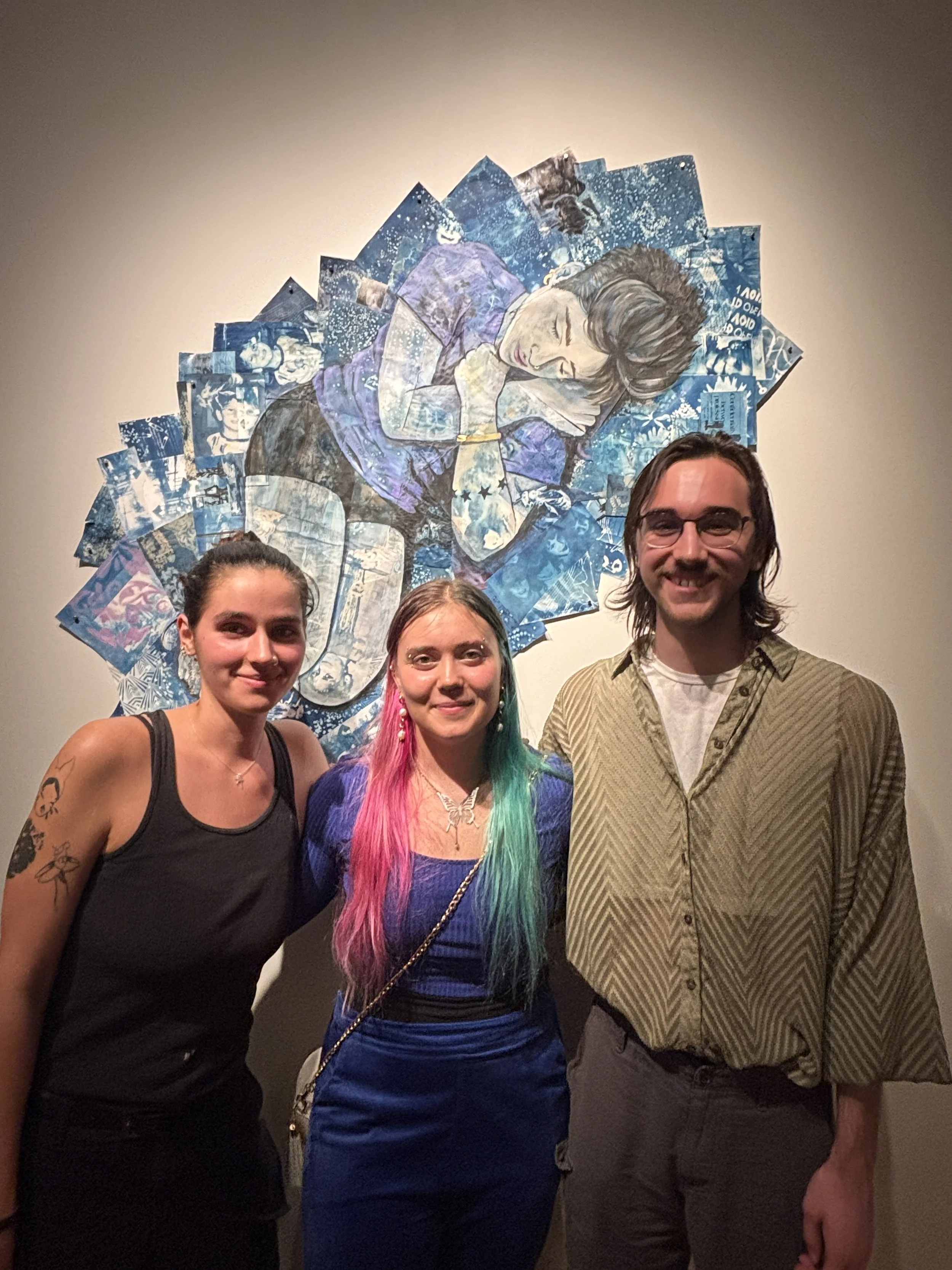 Shamari, 2025. Colored pencil, acrylic paint, and airbrush on collaged cyanotype prints. 4 x 12 ft.
