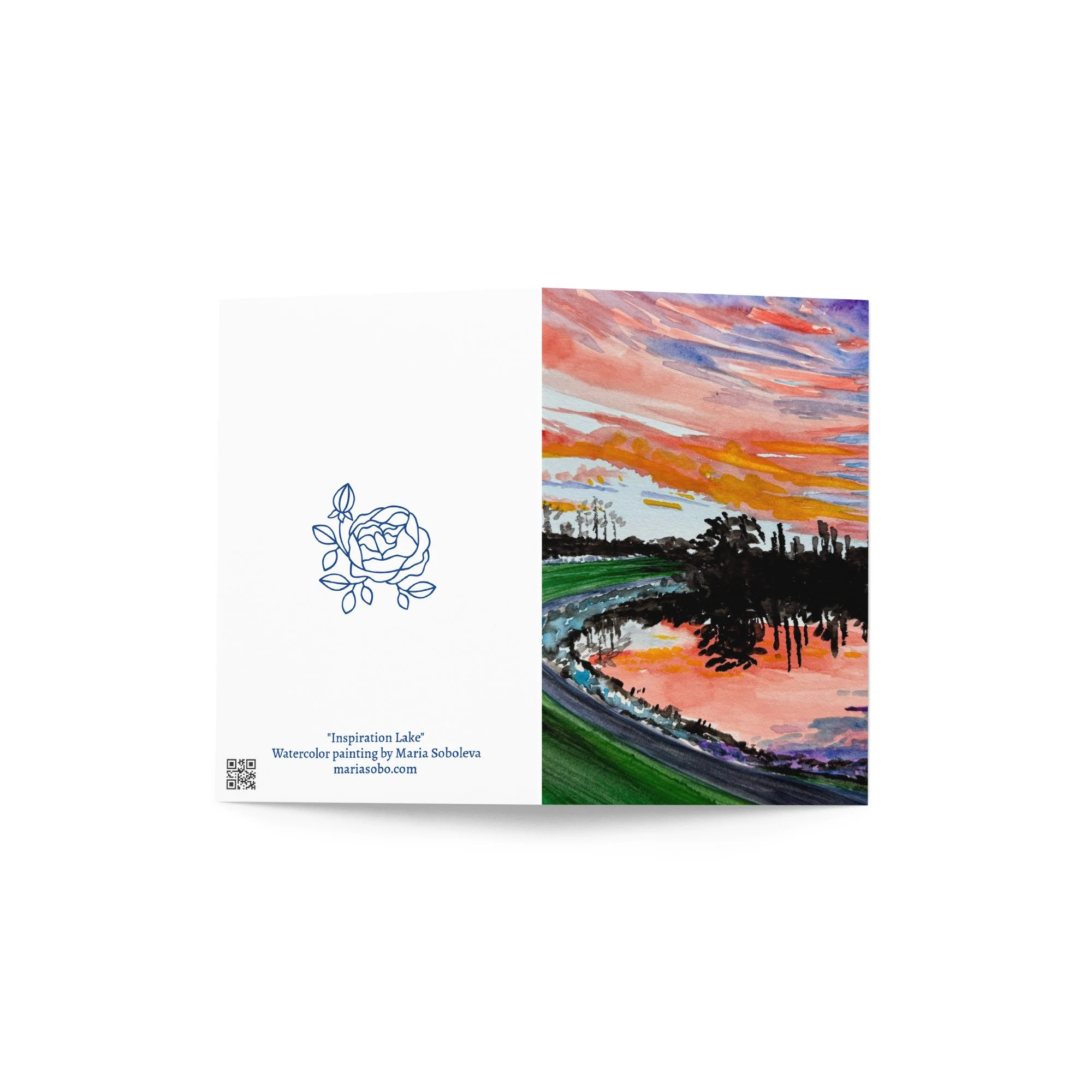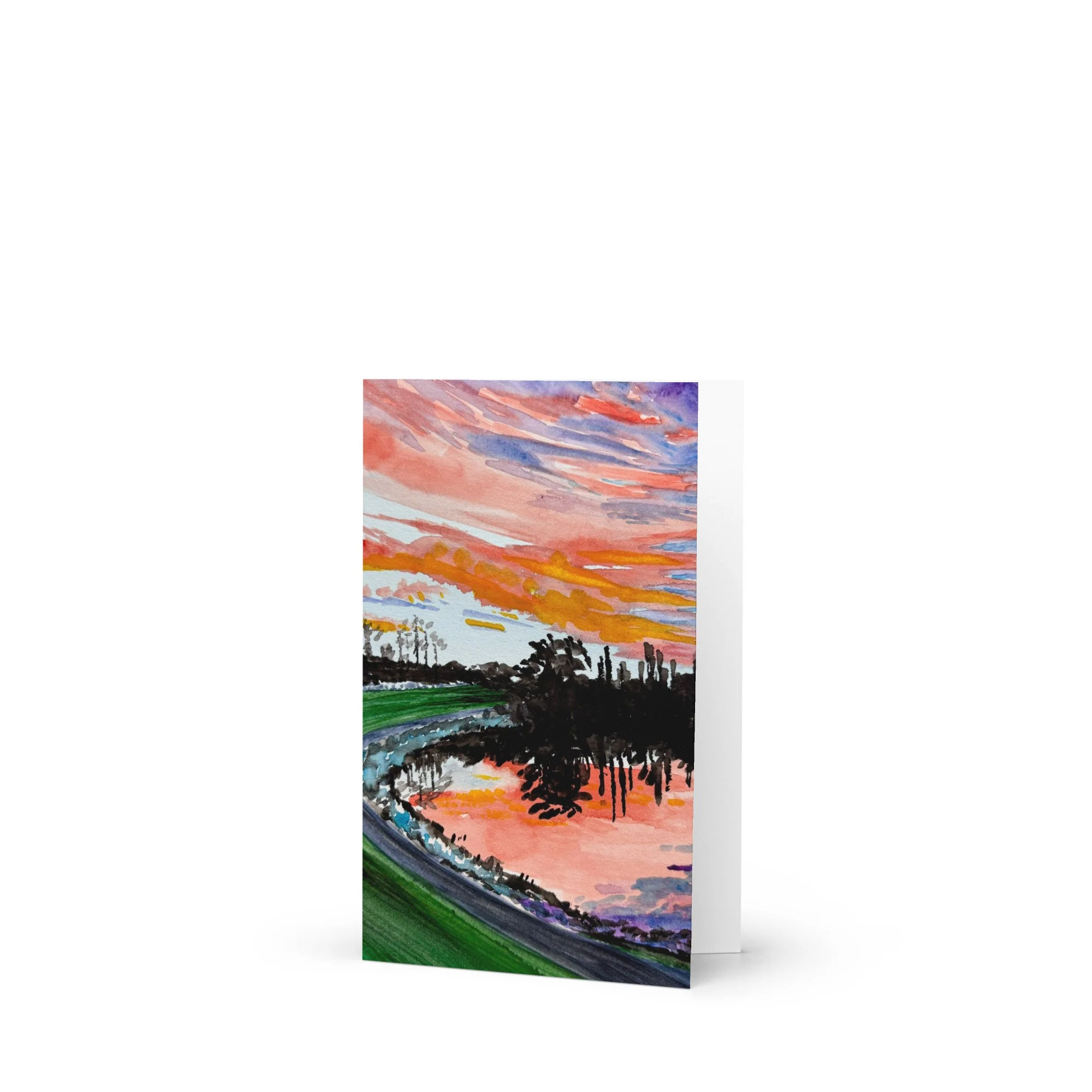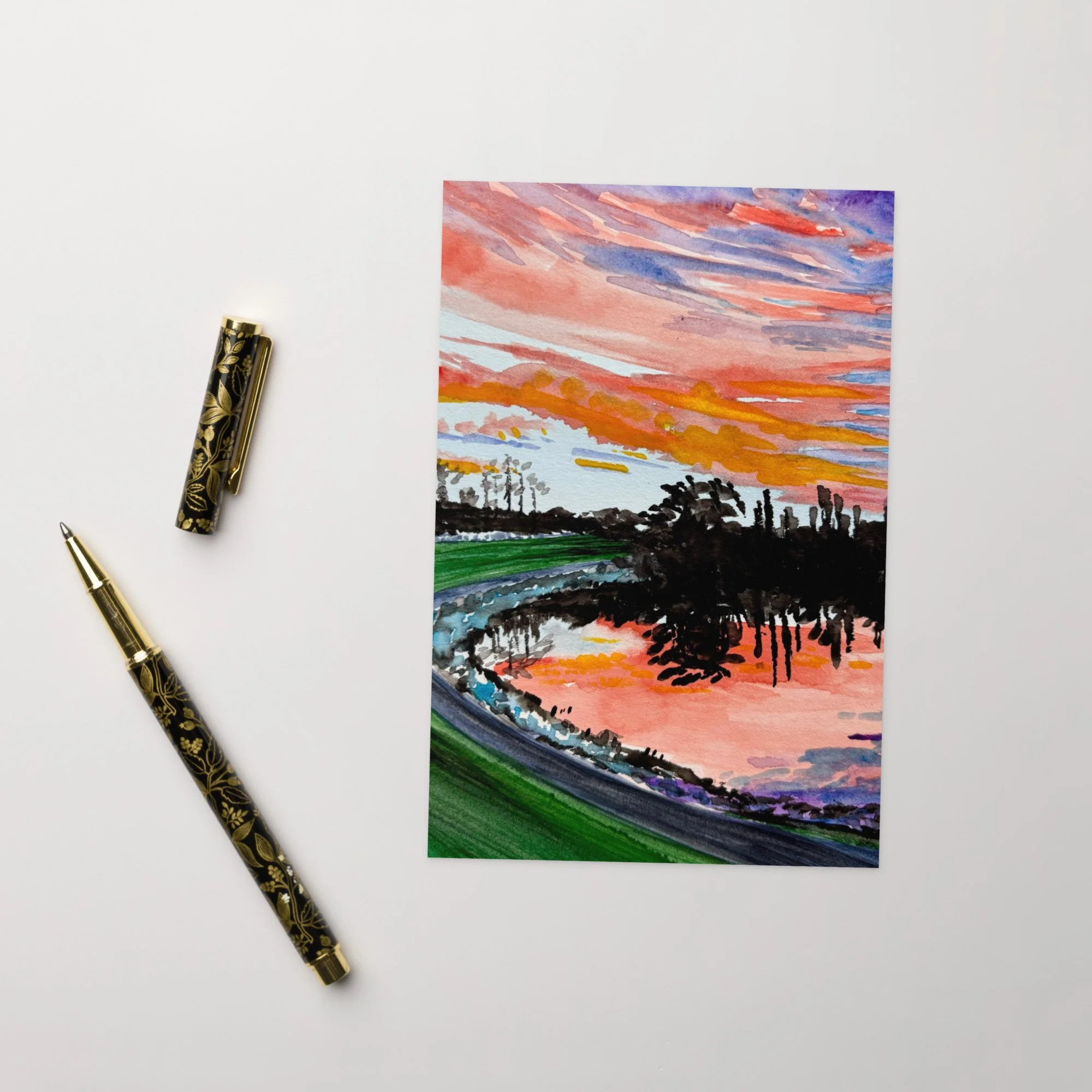 The lake by my childhood home in the Kentlands has such beautiful summer sunsets! This watercolor painting makes a wonderful card for expressing yourself to a loved one or friend.